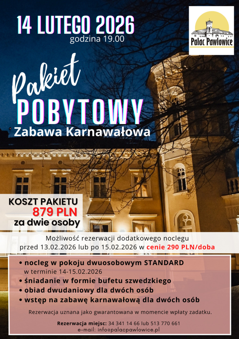 - jeden nocleg w pokoju dwuosobowym zgodnie z wybranym standardem w terminie 14-15.02.2026